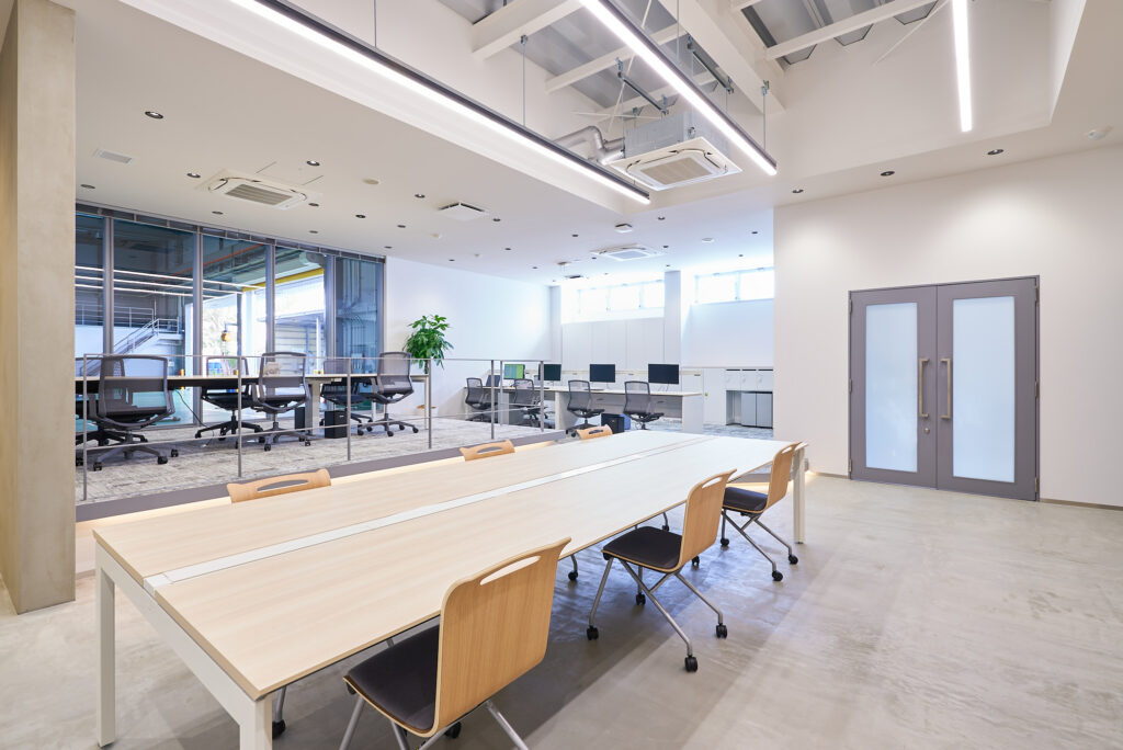さらに、日々お客様と向き合う営業スタッフや、運営を支える事務スタッフが働く事務所の空間も一新しました。新しい事務所からは工場の様子が見渡せる設計を取り入れており、お互いの仕事が見えることで、営業・事務・サービスの部門間コミュニケーションがこれまで以上に活発になり、より一体感のある営業所となるよう工夫しています。